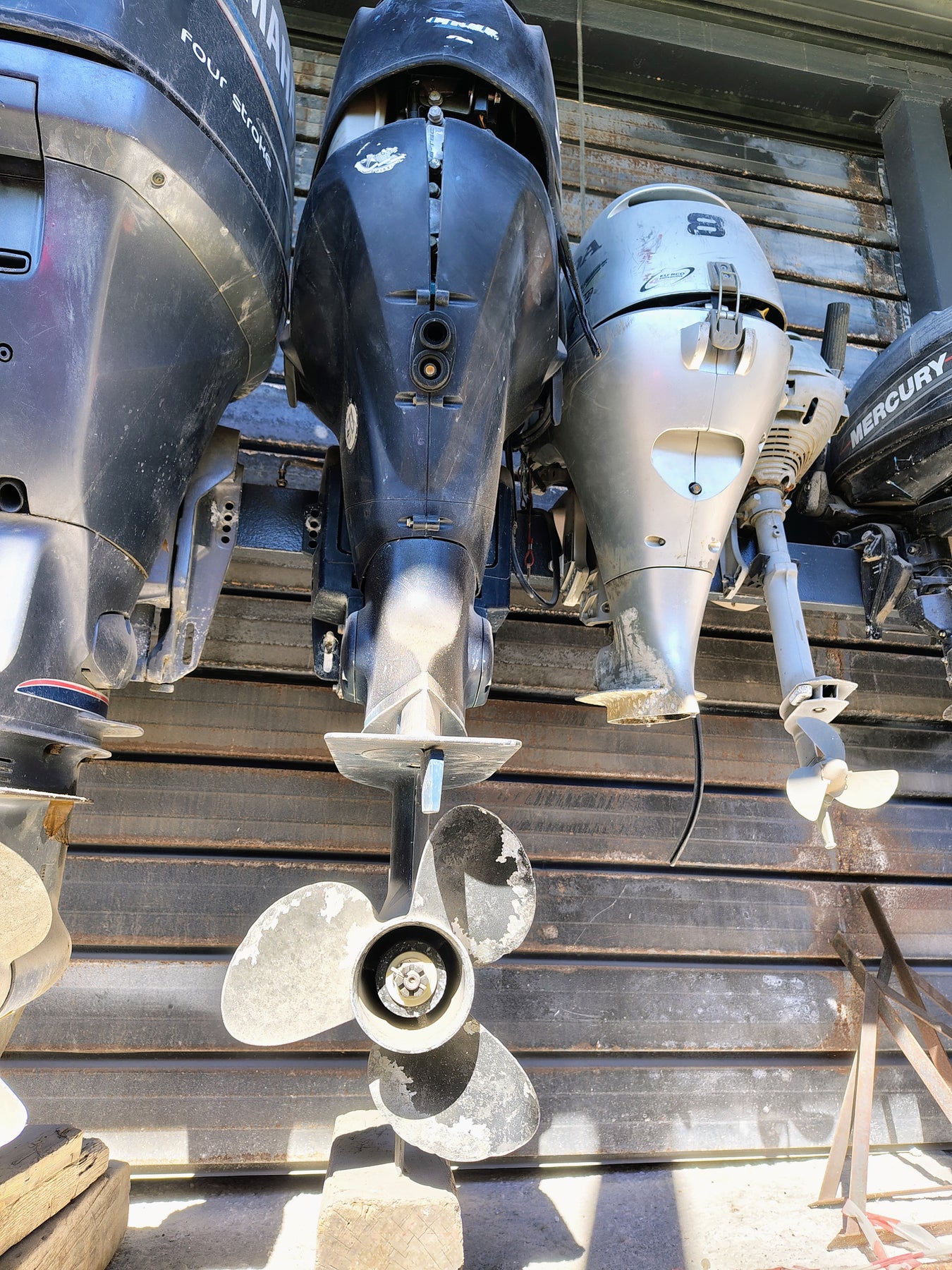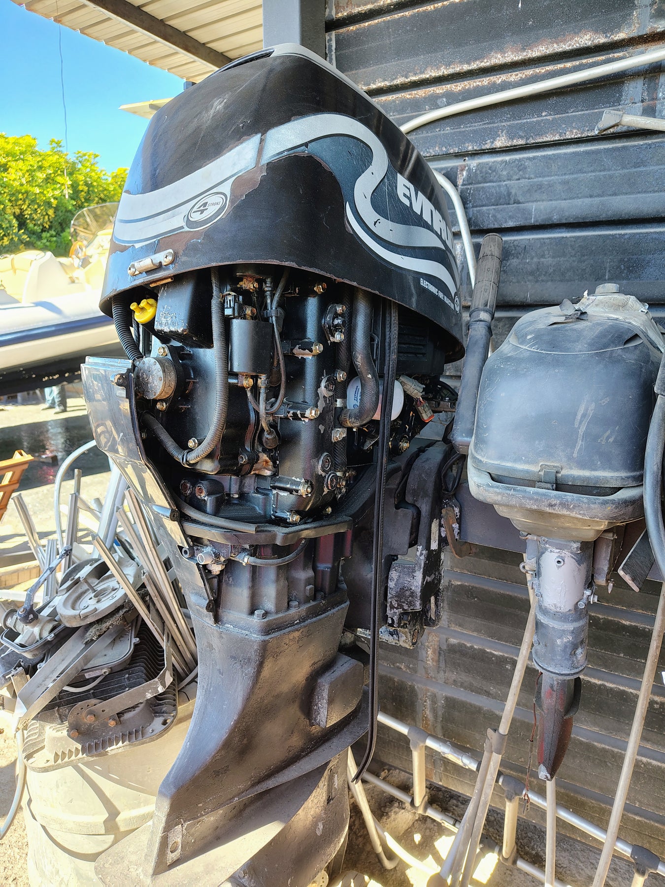 Motori completi non più utilizzabili, smontati e venduti per ricambi per Evinrude 250 CV, Evinrude 90 CV e altri. Possibili parti: centraline, iniettori/carb., pompe, piede, collettori, coperture e minuterie. (Disponibilità variabile per lotto.)